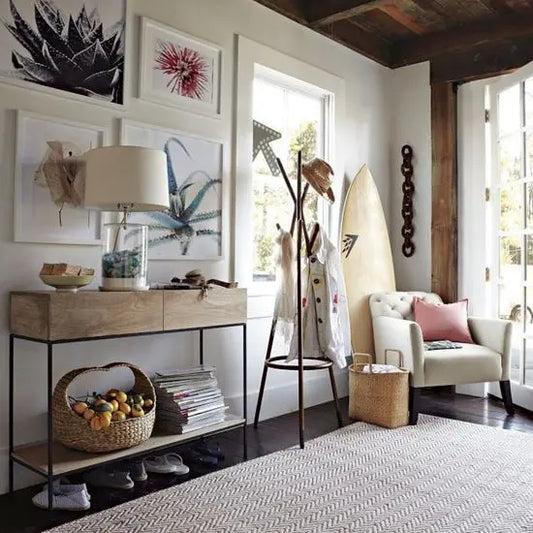 - Decorative Accent: Due to their typically sleek and stylish design, console tables often add a decorative touch to a room, whether it's a contemporary, rustic, or classic style. They come in a variety of materials, such as wood, metal, cane, or glass, and their design can range from minimalist to ornate.