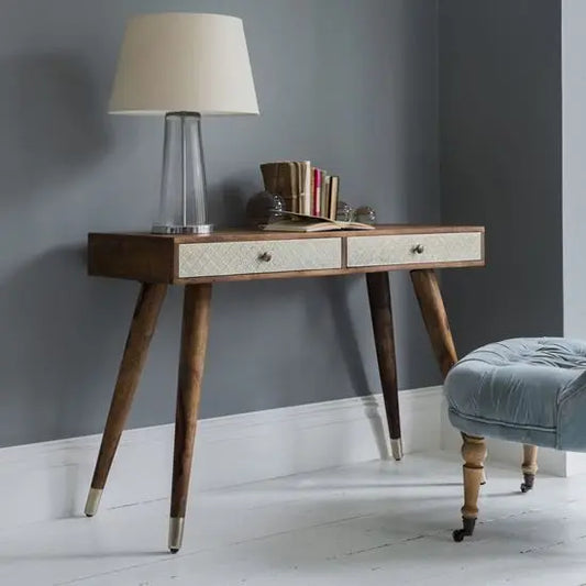 - Writing Desk: A writing desk is a minimalist table with a spacious flat surface, ideal for writing, drafting, or sketching. It typically lacks storage features and is designed for simplicity and elegance, making it suitable for creative pursuits or minimalist decor styles.