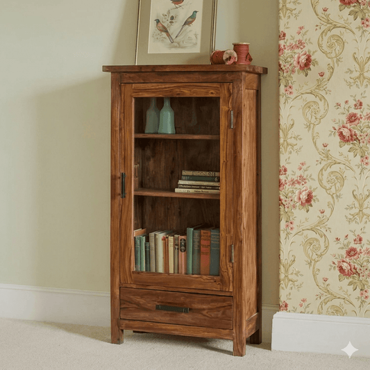 A wood bookshelves is a timeless piece of furniture that adds warmth and character to any room. It's a storage unit for books and a display area for decorative items, photographs, and other cherished belongings. Wooden bookcases come in various styles, from traditional to modern, and can be made from different types of wood, i.e.Sheesham, mango, and Acacia wood, each with its unique grain and colour. They're versatile enough to fit any decor scheme, whether you prefer a rustic farmhouse look or a sleek contemporary vibe. They're sturdy and durable, making them a practical choice for organizing your library and showcasing your style.
