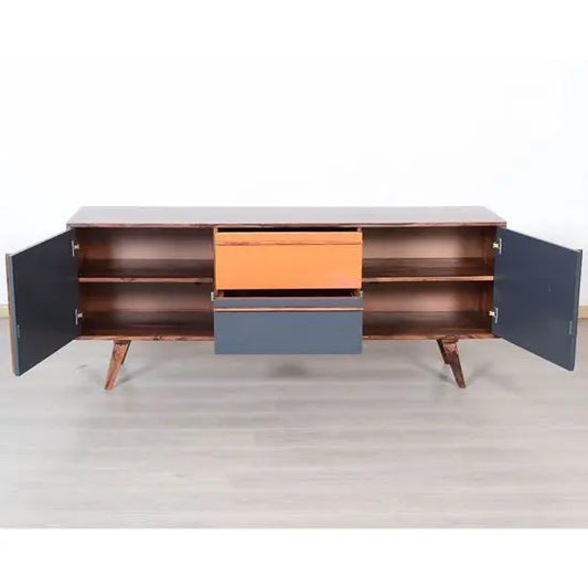 A Wooden sideboard typically refers to a piece of furniture designed for storage and display, often found in dining rooms or living rooms. It usually consists of cabinets, drawers, and shelves, providing ample space for storing diningware, linens, or other items. Sideboards come in various styles, ranging from traditional to modern, and can add both functionality and aesthetic appeal to a room. Our wooden sideboard cabinets are made from Sheesham wood, mango wood, and acacia wood.